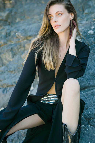 Gizli Sırt Dekolteli Deri Bluz