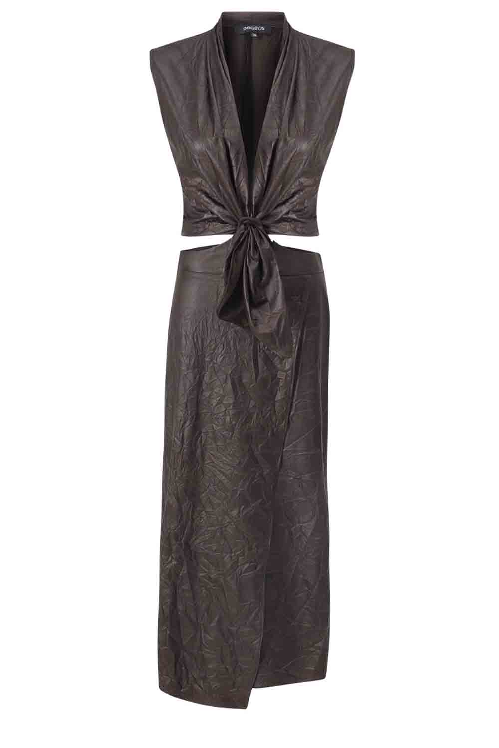Üst kısmı bağımsız bir crop/bluz olarak kullanılabilirken, alt etek detayı elbise formundan ayrılarak tek başına modern bir etek görünümüne dönüşebilir.